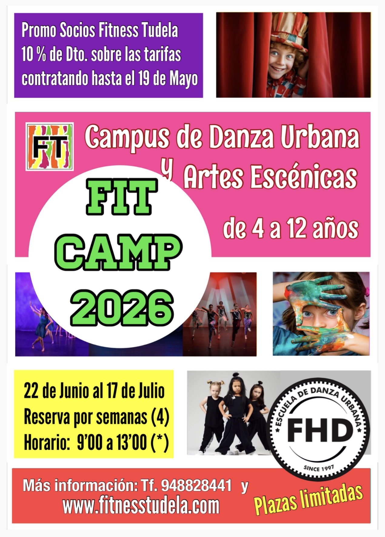 De nuevo, y como cada verano, desde la escuela de Baile y Artes Escénicas FHD de Fitness Tudela preparamos FIT CAMP URBANO 2025, DE 4 A 12 AÑOS, en las instalaciones del centro en Tudela (Navarra). Campus dedicado a la…